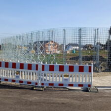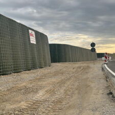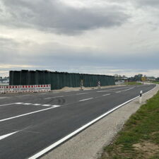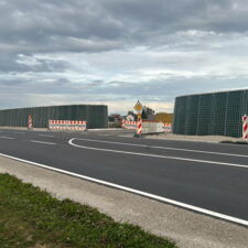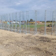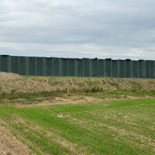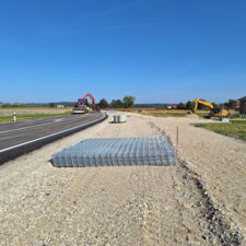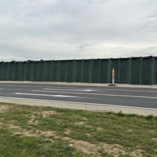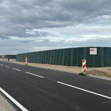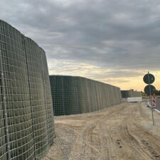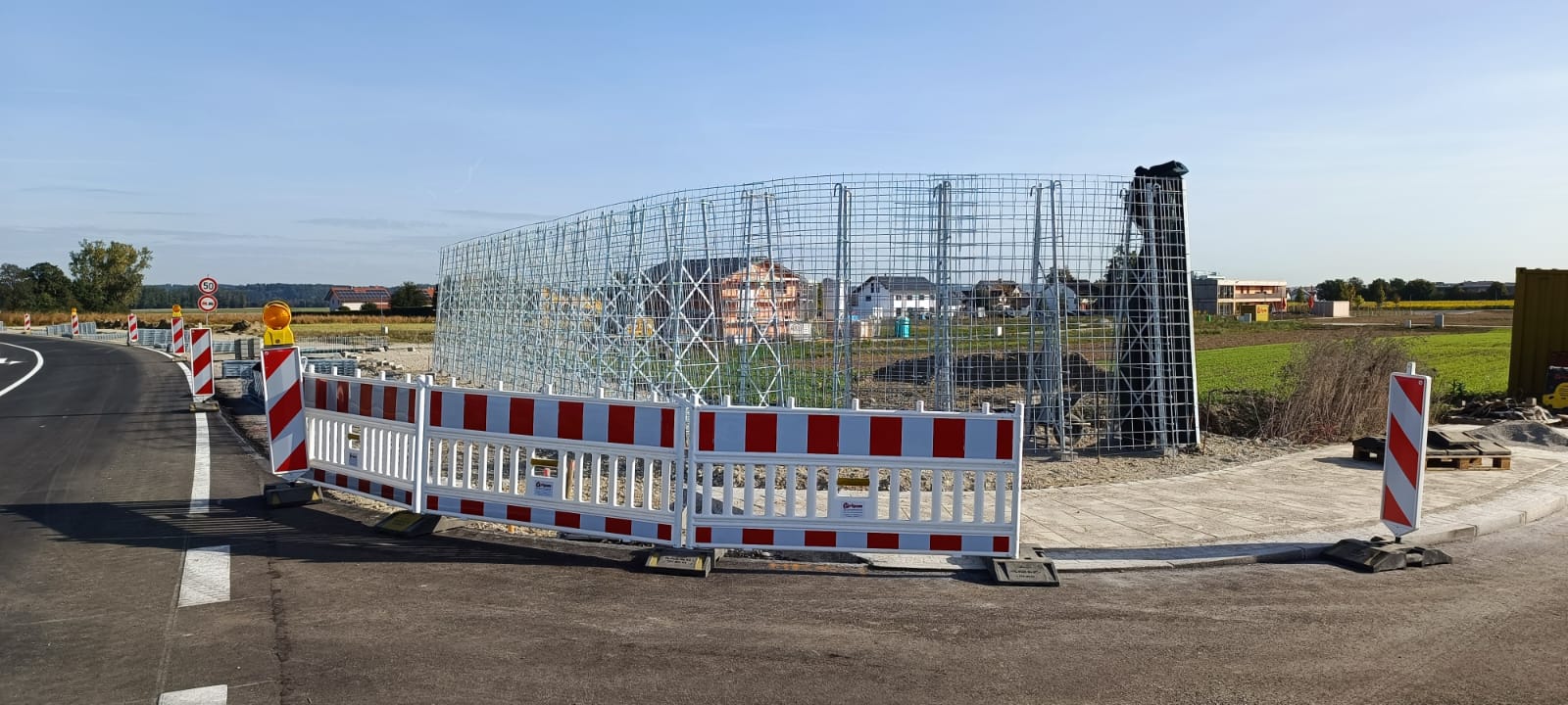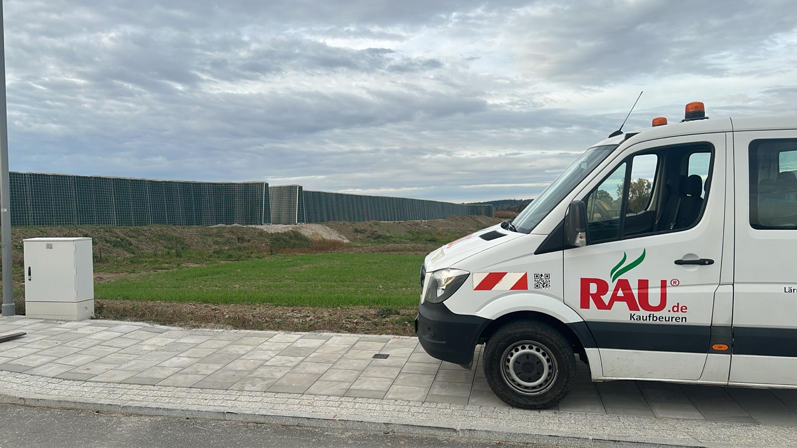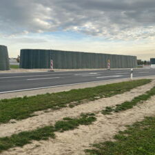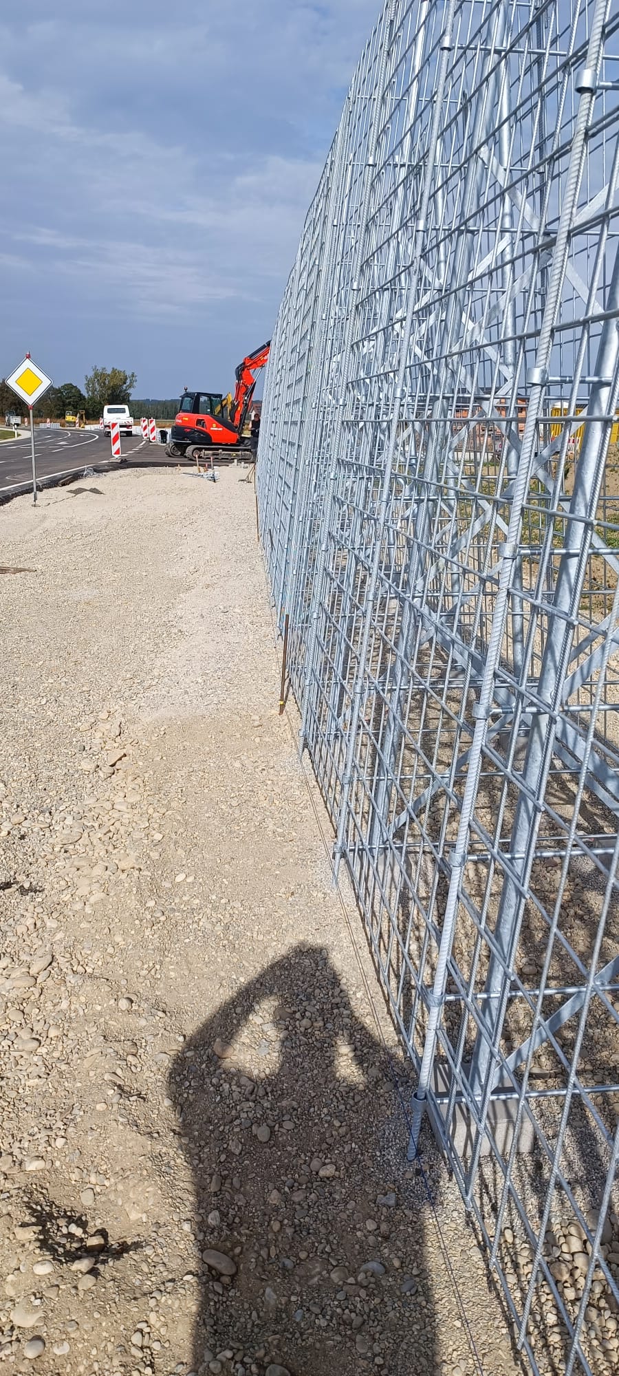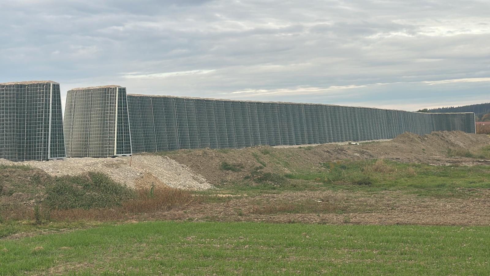 RAUbayern errichtet 204,15 m ökologischen Lärmschutz entlang des neuen Baugebietes in Mühldorf am Inn. An den zwei Durchlässen zum Wohngebiet und an Anfang und Ende wird die Lärmschutzwand in einem Viertelkreis gefertigt, um den seitlich auftreffenden Verkehrslärm effektiv abzuschirmen.