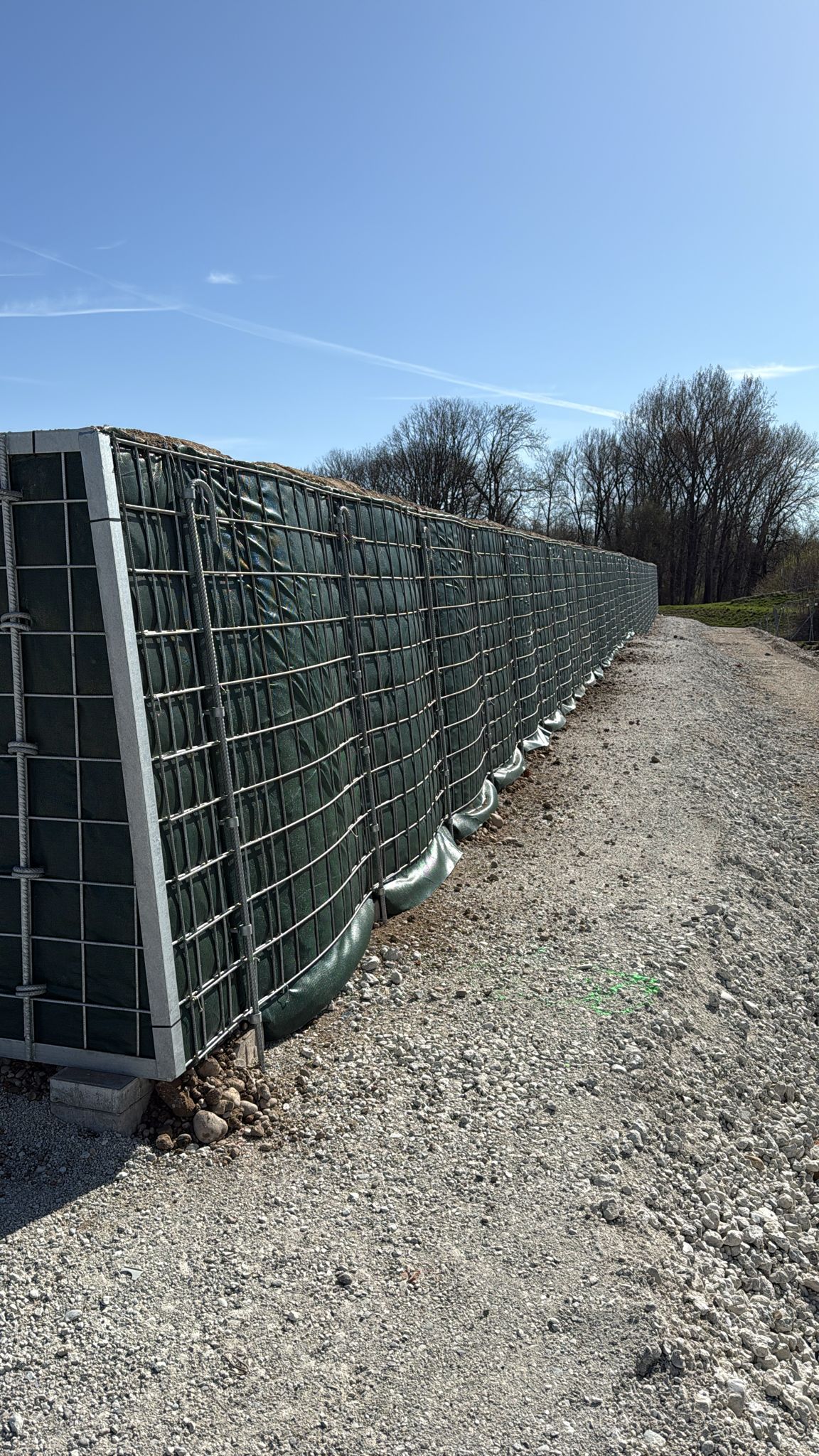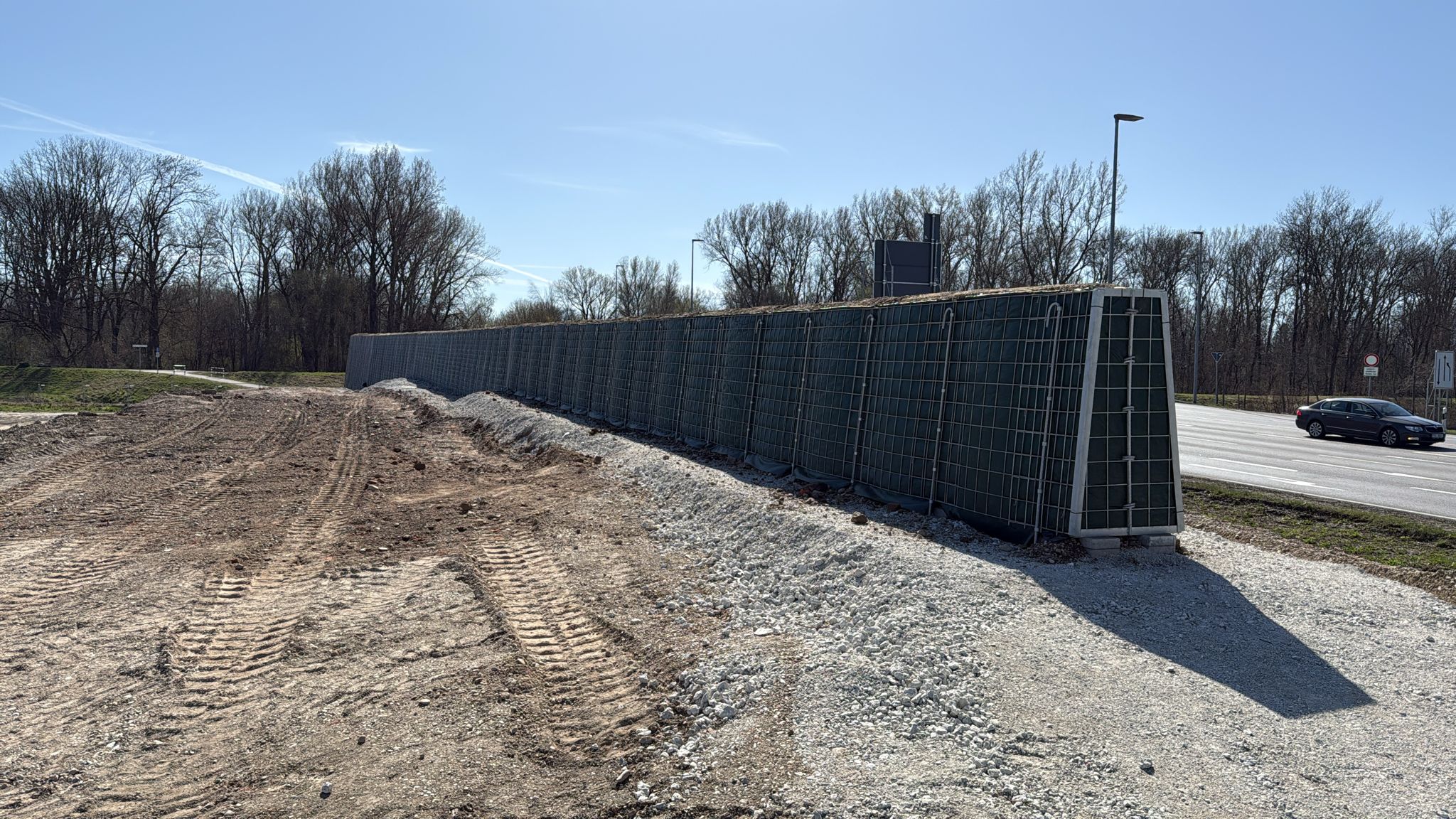 Da passt unsere grüne RAU Klimawand (R3) genau ins Konzept! Die über 90 m lange, bepflanzte Lärmschutzwand entlang der Staatsstraße wird den Verkehrslärm abschirmen, damit nichts diese Idylle stört. Und damit auch die Optik stimmt, haben wir trotz der verschiedenen Höhen eine gerade Oberkante der Schallschutzwand geschaffen.