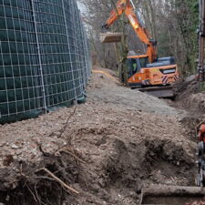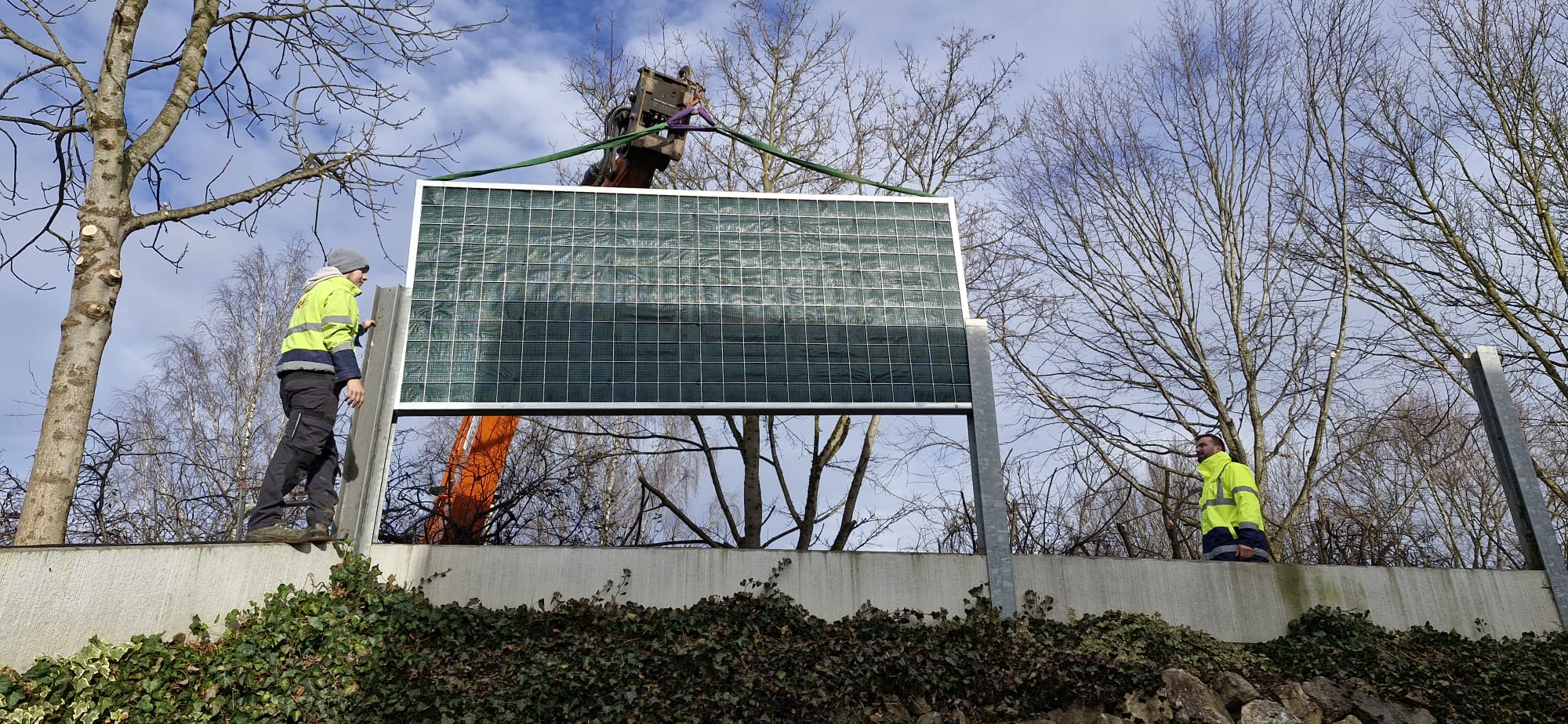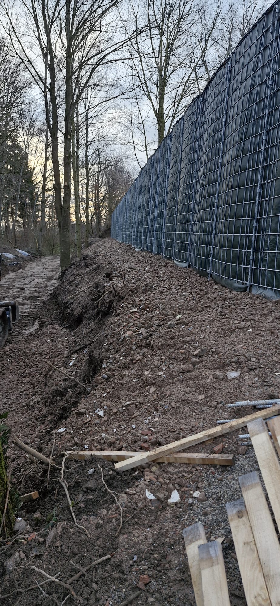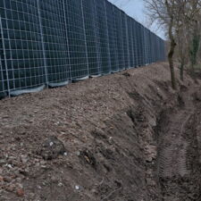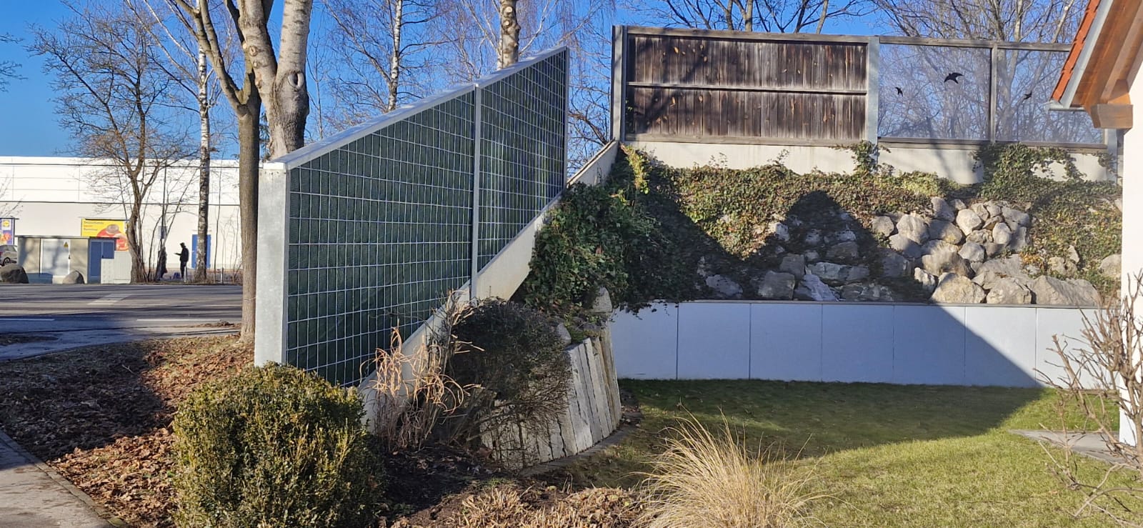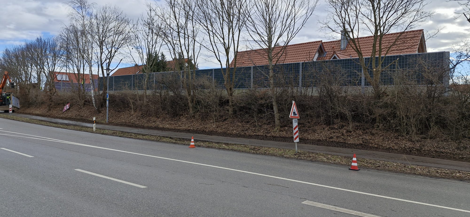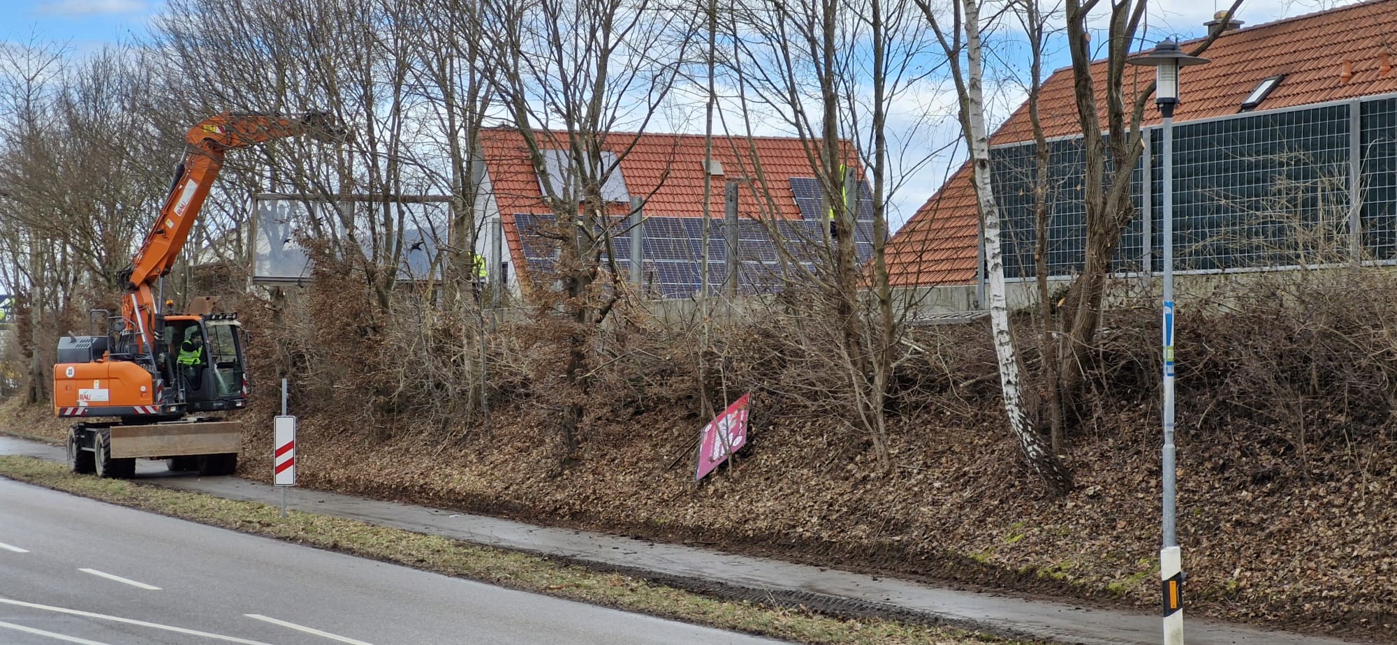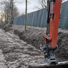 Zum einen hatten wir den Auftrag für den Rückbau und die fachgerechte Entsorgung einer alten, mit Chemikalien behandelten Lärmschutzwand aus Holz, die sehr in die Jahre gekommen war und technisch gesehen nicht mehr vor Lärm geschützt hat. Der Auftraggeber hatte sich als Neubau für unsere ökologische RAU Klimawand (R3) entschieden, die eine nachhaltige Alternative zu traditionellen Schallschutzwänden bietet. Eine Lärmschutzwand, die aus der Natur gemacht wird, in der sie steht. Ökologisch, wirtschaftlich, effektiv. Sie ist nicht nur hochwirksam bei der Reduzierung von Lärm, sondern auch ästhetisch ansprechend, haltbar und trägt zur Verbesserung des natürlichen Lebensraums bei. Der Auftrag sollte noch vor Weihnachten abgeschlossen werden.
