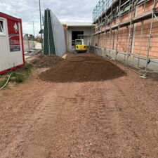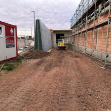 Aber nicht nur der Kundenverkehr, sondern auch die Anlieferung verursacht Lärm. Deshalb wurde von den Verantwortlichen die bewährte, voll begrünte RAU Lärmschutzwand (R3) eingeplant. Dieses Mal in stattlichen 5,00 m Höhe und einer Länge von 18,36 m zwischen Straße und Warenannahme.