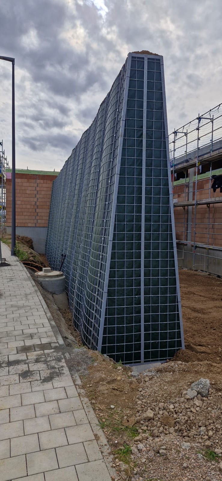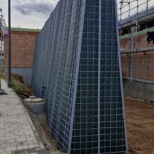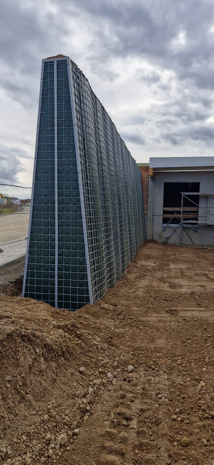 Bereits im Dezember 2023 haben wir an gleichem Standort in Maxhütte-Haidhof eine 34,80 m lange und 3,00 m hohe RAU Klimawand (R3) realisiert, die dem neuen Wohngebiet "lena" (steht für „Leben, Einkaufen, Natur und Ankommen“) Schutz vor Lärm geben wird. Das neue Projekt, nun in Zusammenarbeit mit der HD-Bau Gewerbe GmbH, ist etwas kürzer, stattdessen aber wesentlich höher.