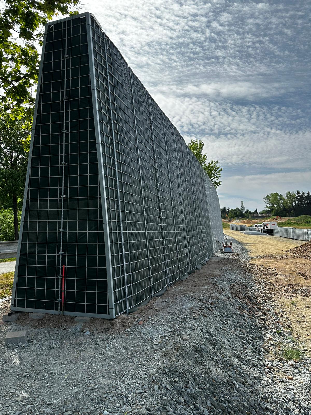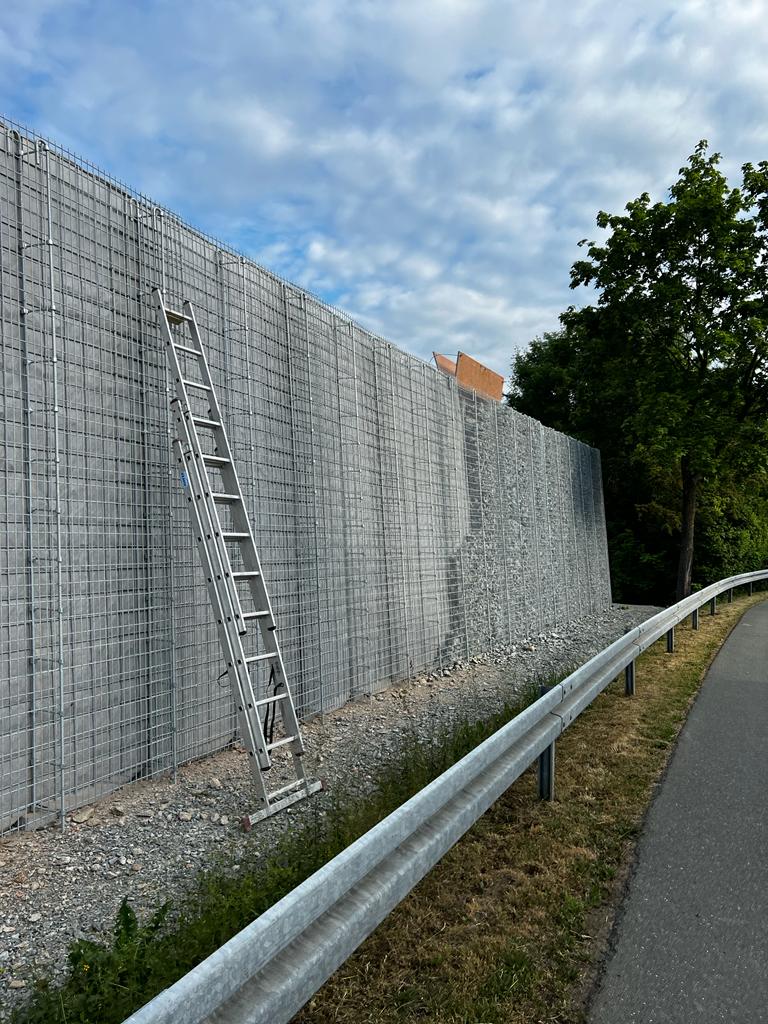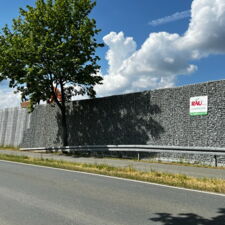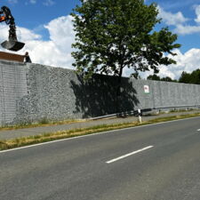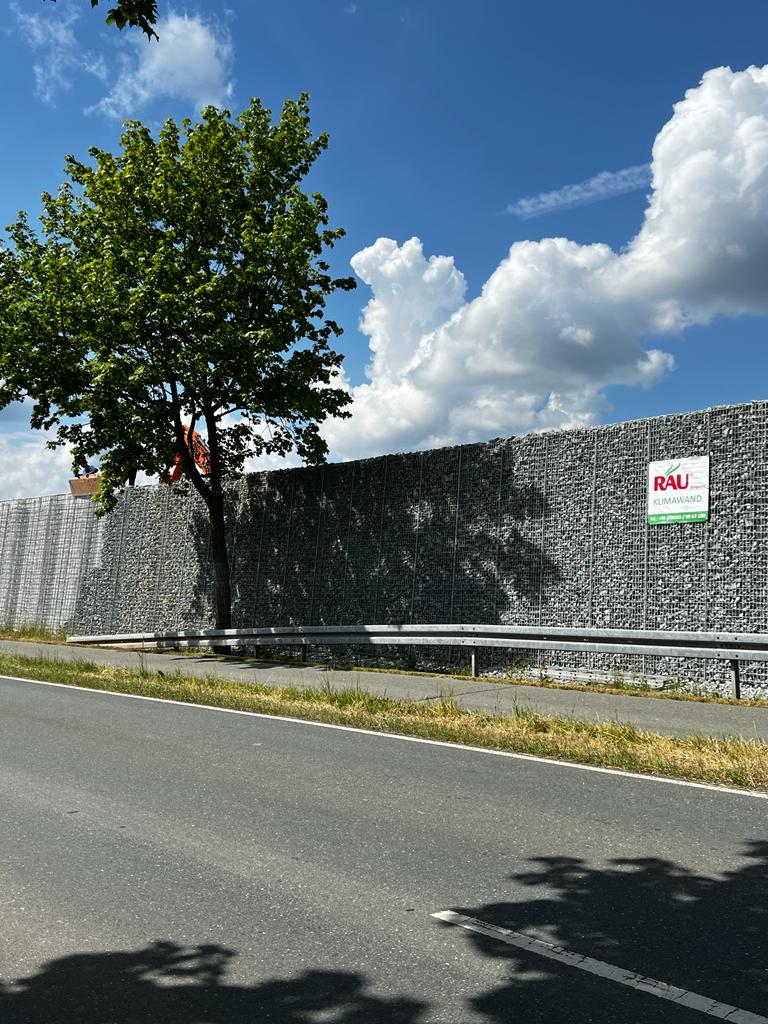 Kein Bewuchs auf der Straßenseite erlaubt? RAU Klimawand (R3) mit einseitigem Steinvorsatz durch die Gabionenwand RAU Alpin.