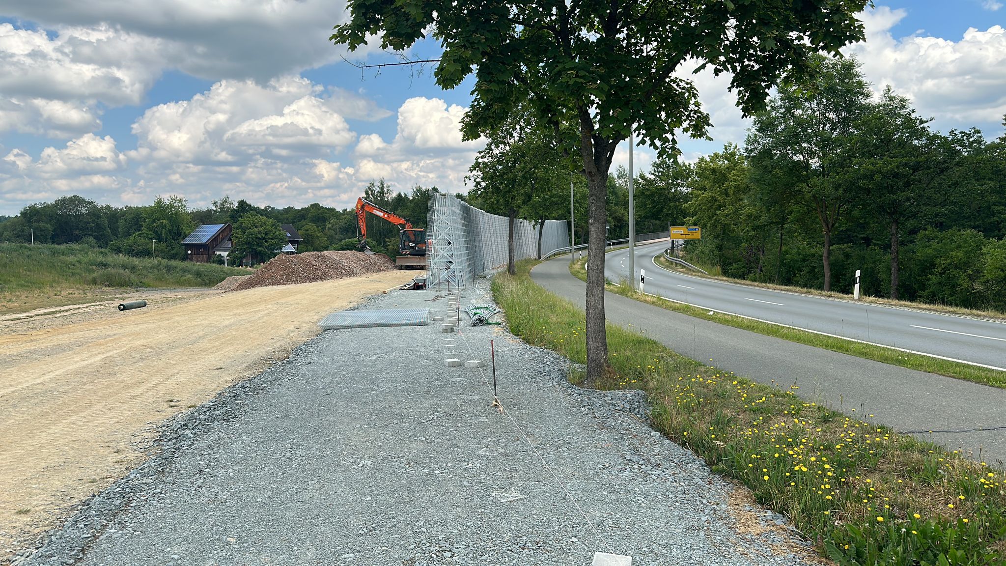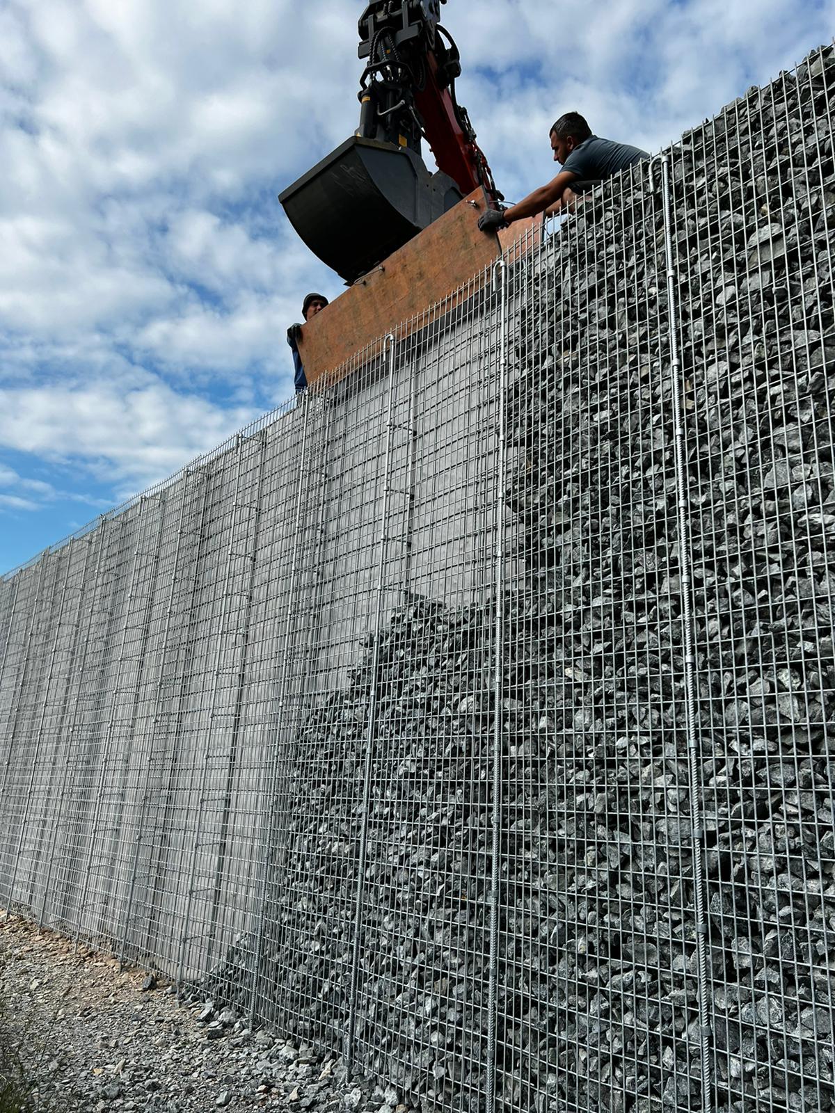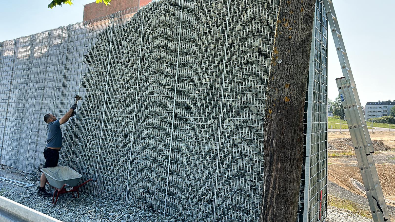 Kein Bewuchs auf der Straßenseite erlaubt? RAU Klimawand (R3) mit einseitigem Steinvorsatz durch die Gabionenwand RAU Alpin.