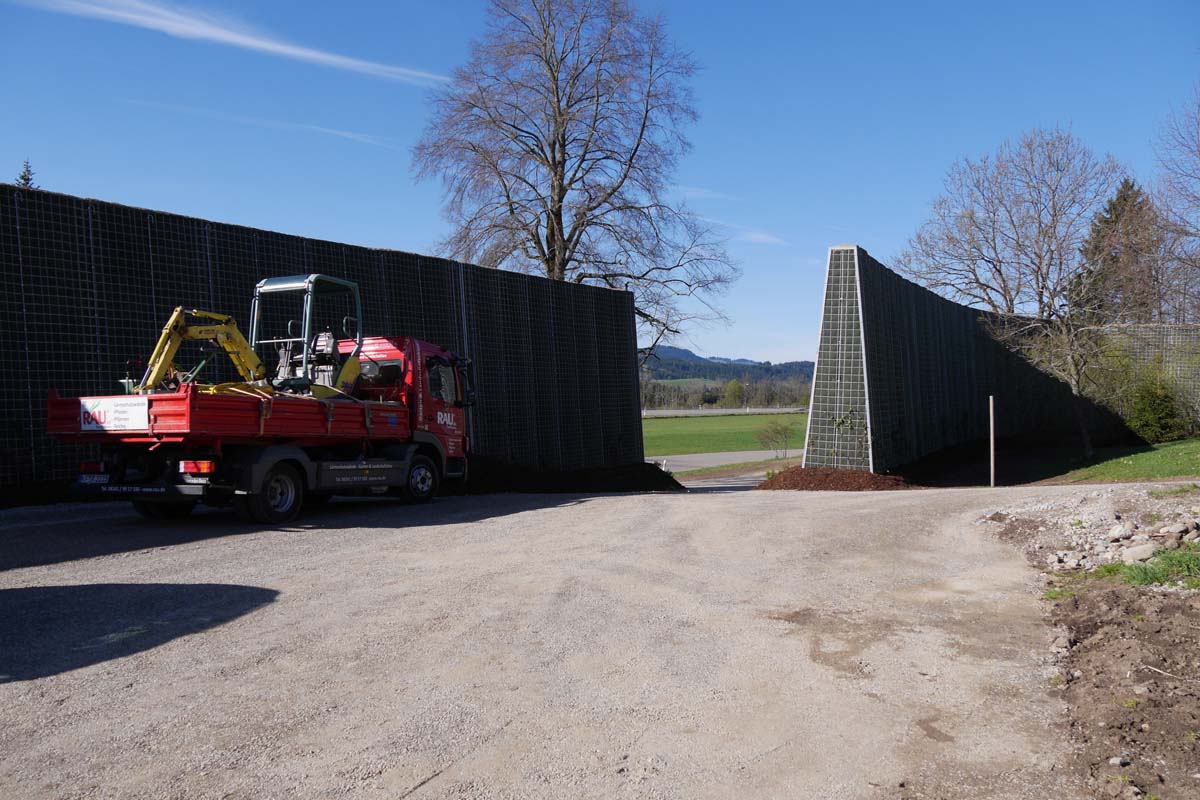 Die Eremitage des Ordens Heilig-Blut-Gemeinschaft liegt direkt an der vielbefahrenen B12 in Weitnau. Damit die Kurse, Seminare und Vorträge, die die Gemeinschaft anbietet, in der dafür notwendigen Ruhe stattfinden können, wurde um das Gelände eine extensive RAU R3 Lärmschutzwand errichtet, die in kürzester Zeit wunderbar üppiges Grün entwickelte.