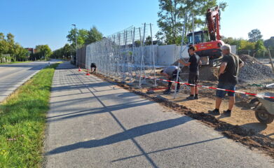 Traunstein wächst und erschließt ein neues Baugebiet in Seiboldsdorf. RAUbayern kümmert sich um den Lärmschutz und errichtet in 6 Tagen 70 m RAU Klimawand.