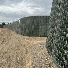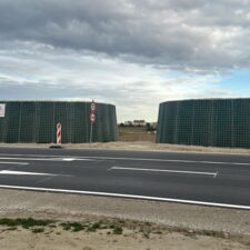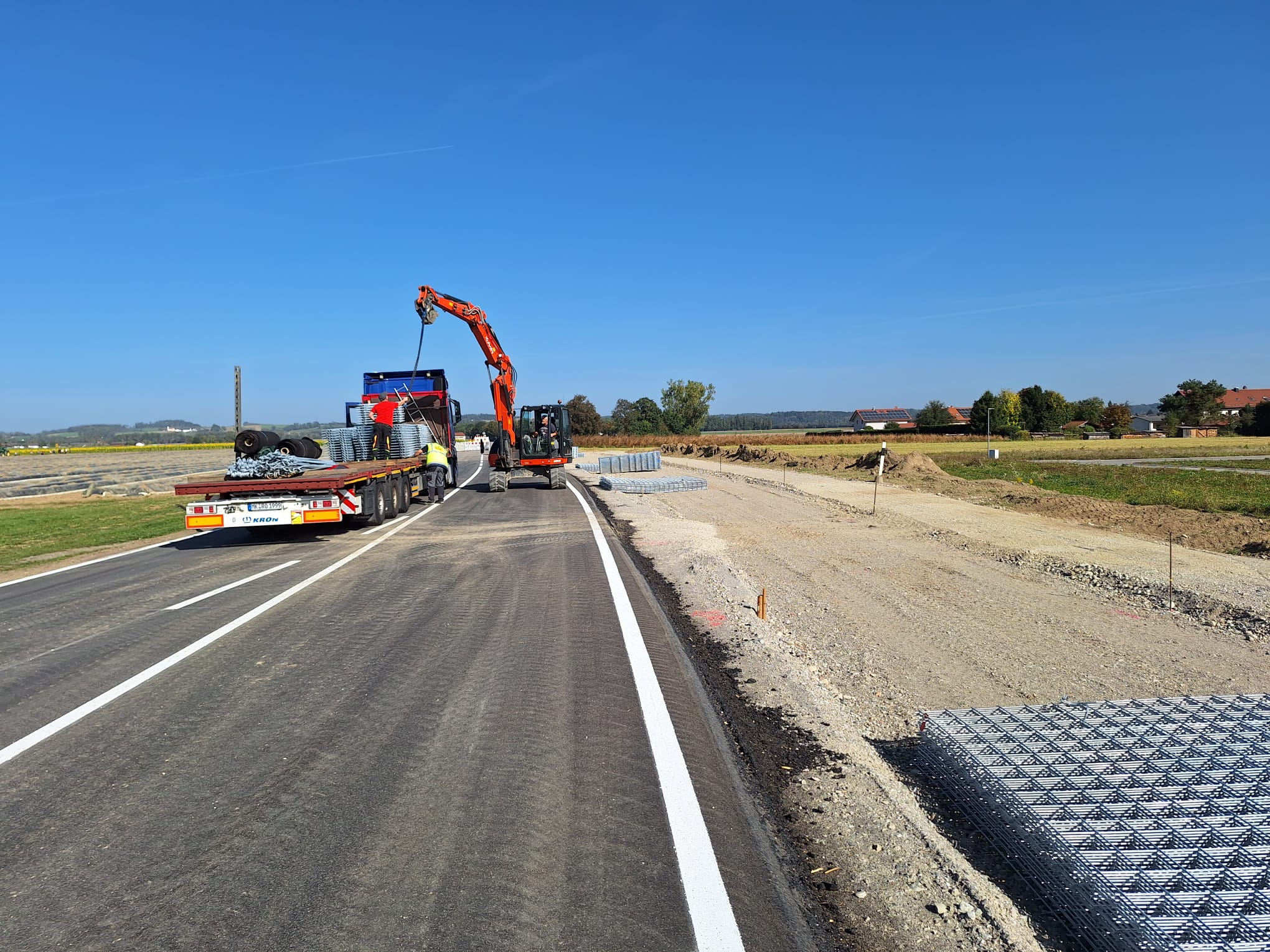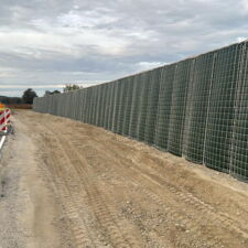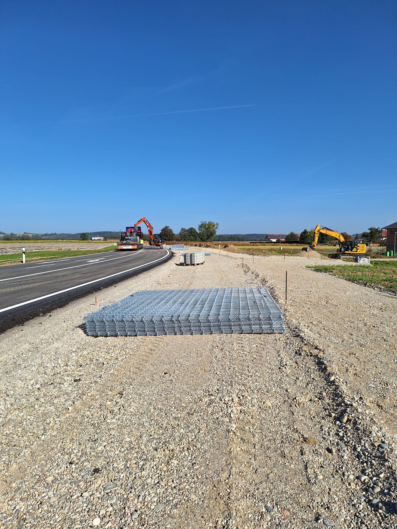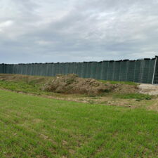 RAUbayern errichtet 204,15 m ökologischen Lärmschutz entlang des neuen Baugebietes in Mühldorf am Inn. An den zwei Durchlässen zum Wohngebiet und an Anfang und Ende wird die Lärmschutzwand in einem Viertelkreis gefertigt, um den seitlich auftreffenden Verkehrslärm effektiv abzuschirmen.