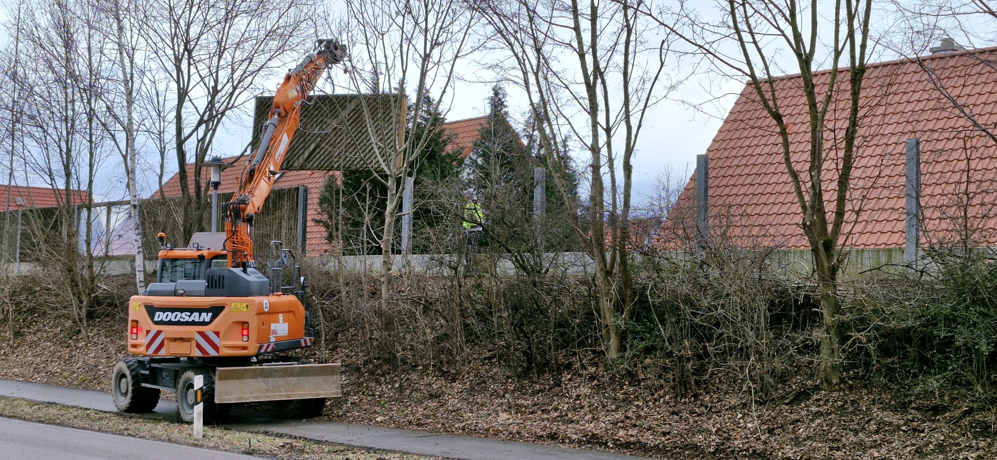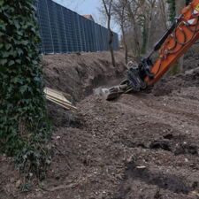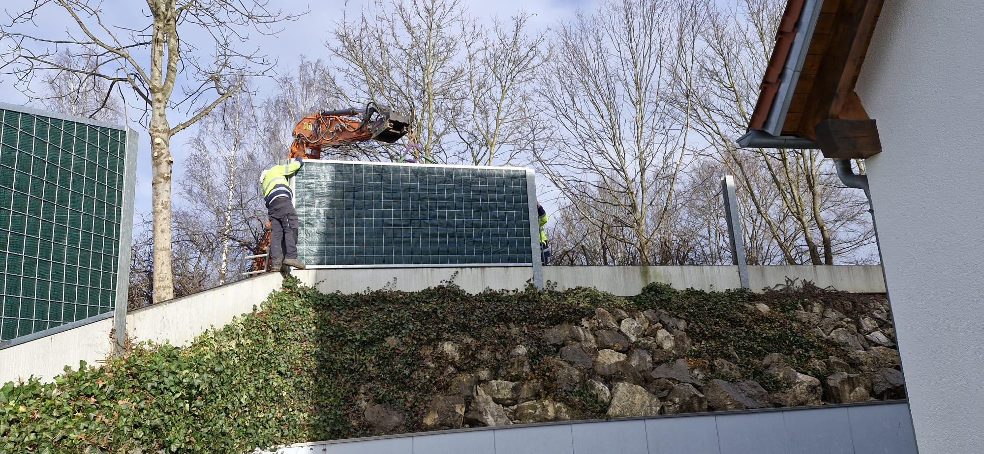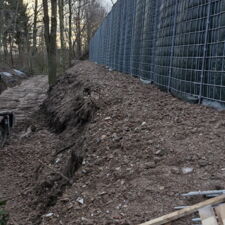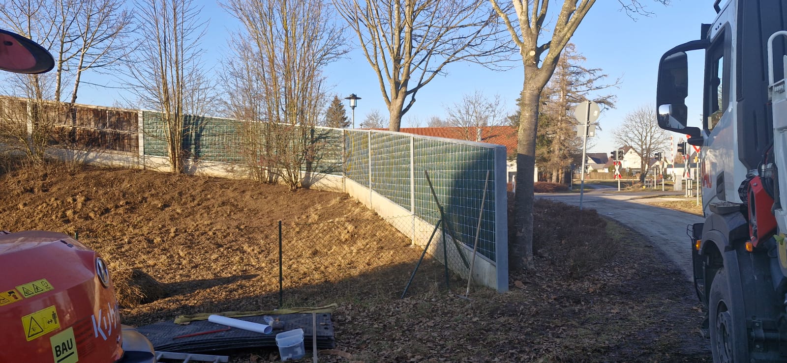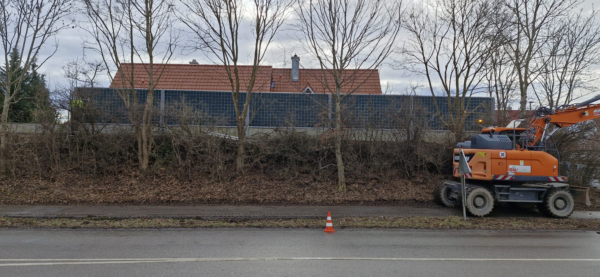 Zum einen hatten wir den Auftrag für den Rückbau und die fachgerechte Entsorgung einer alten, mit Chemikalien behandelten Lärmschutzwand aus Holz, die sehr in die Jahre gekommen war und technisch gesehen nicht mehr vor Lärm geschützt hat. Der Auftraggeber hatte sich als Neubau für unsere ökologische RAU Klimawand (R3) entschieden, die eine nachhaltige Alternative zu traditionellen Schallschutzwänden bietet. Eine Lärmschutzwand, die aus der Natur gemacht wird, in der sie steht. Ökologisch, wirtschaftlich, effektiv. Sie ist nicht nur hochwirksam bei der Reduzierung von Lärm, sondern auch ästhetisch ansprechend, haltbar und trägt zur Verbesserung des natürlichen Lebensraums bei. Der Auftrag sollte noch vor Weihnachten abgeschlossen werden.