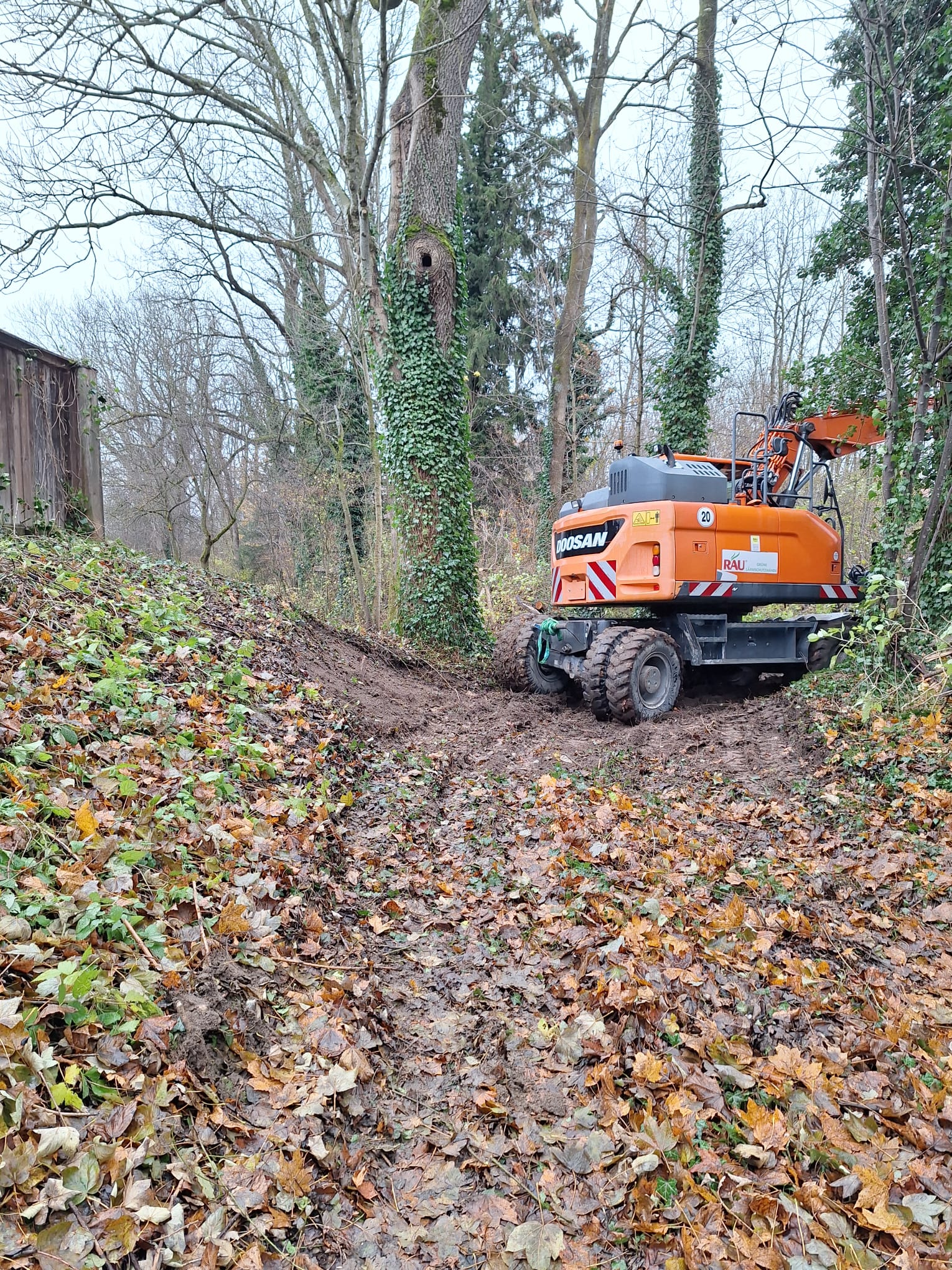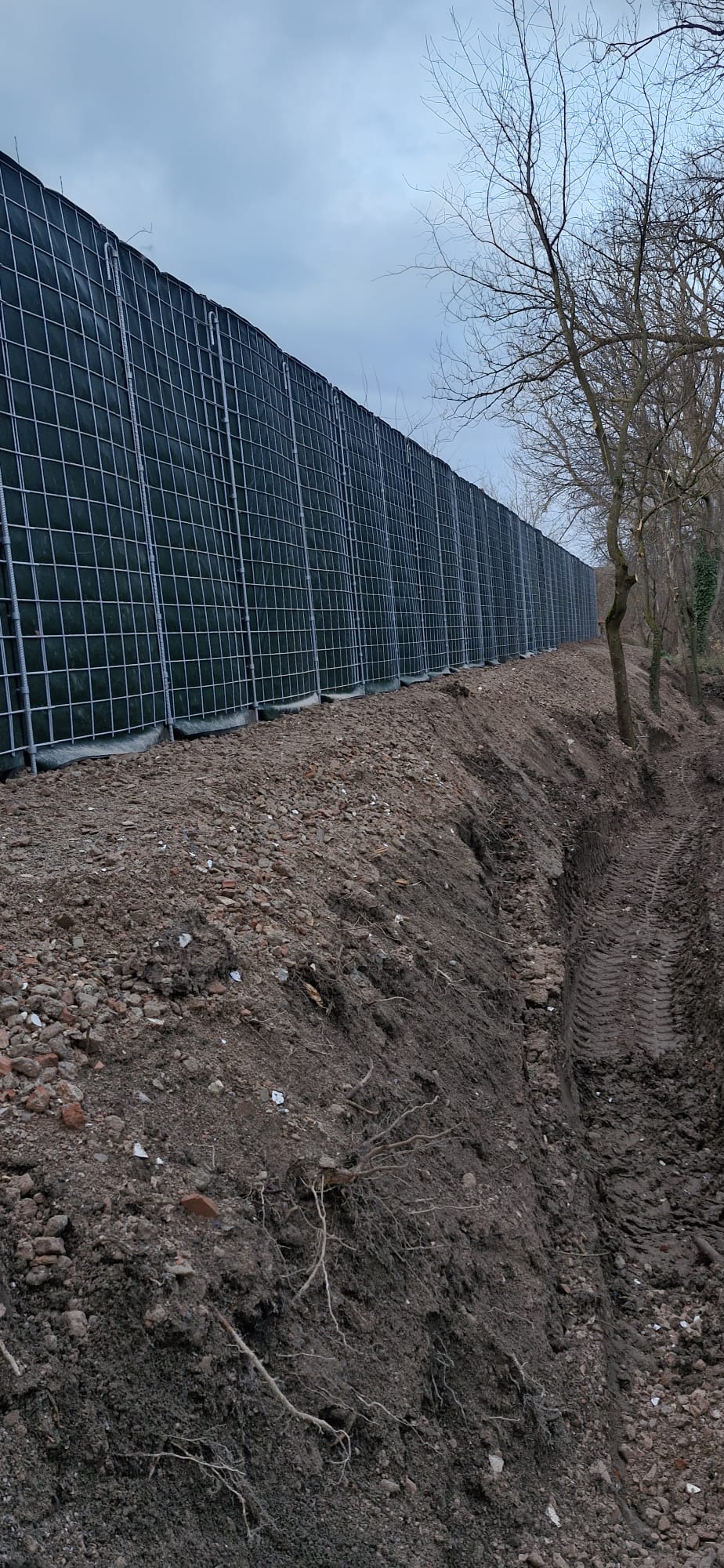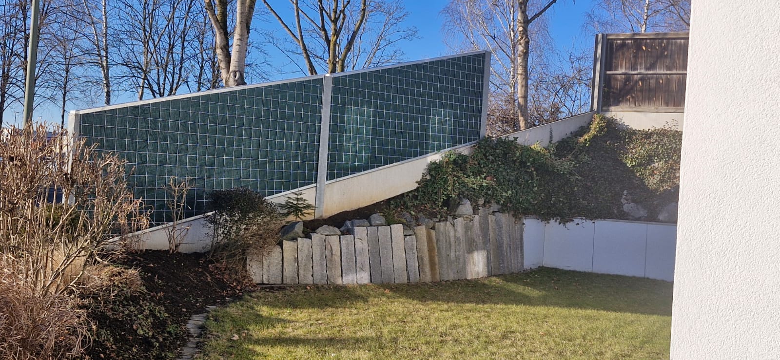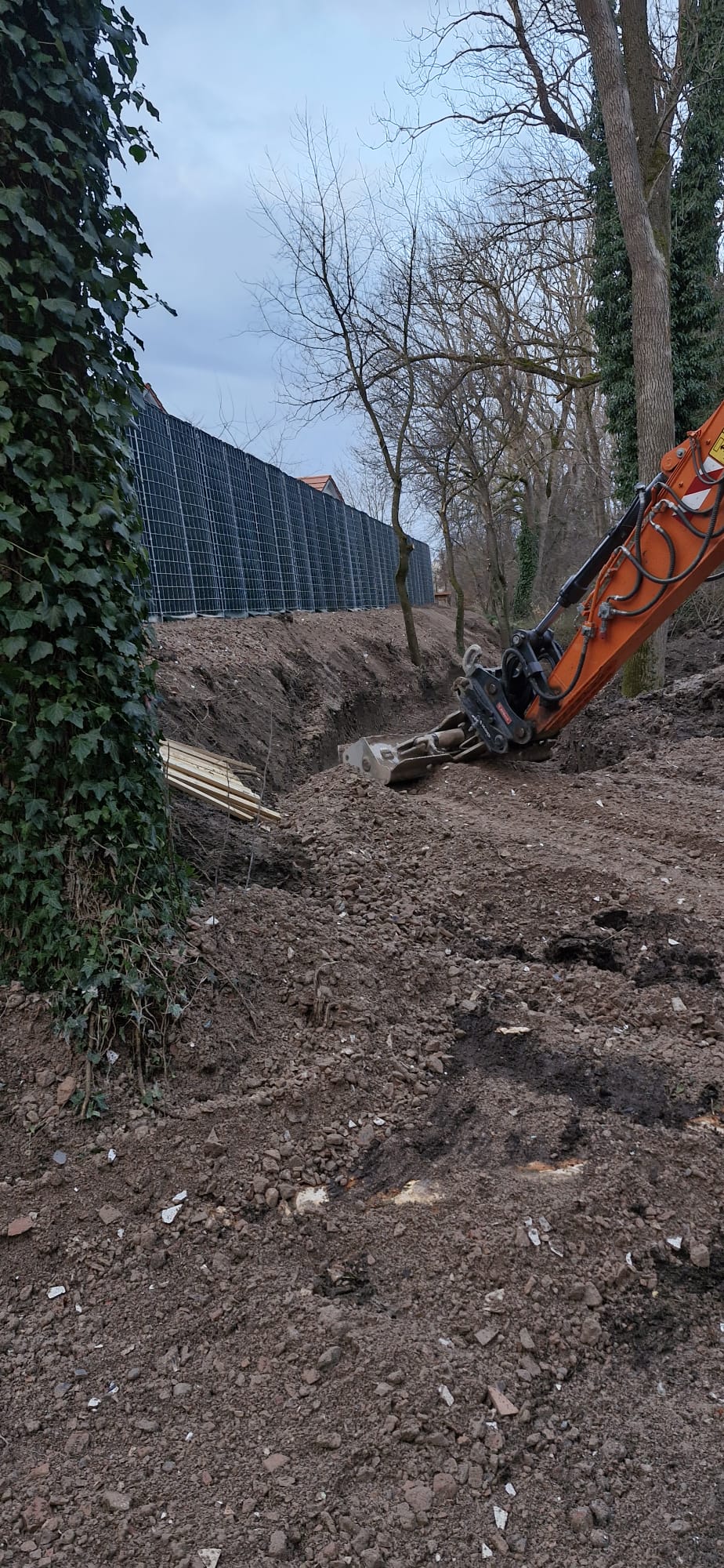 Zum einen hatten wir den Auftrag für den Rückbau und die fachgerechte Entsorgung einer alten, mit Chemikalien behandelten Lärmschutzwand aus Holz, die sehr in die Jahre gekommen war und technisch gesehen nicht mehr vor Lärm geschützt hat. Der Auftraggeber hatte sich als Neubau für unsere ökologische RAU Klimawand (R3) entschieden, die eine nachhaltige Alternative zu traditionellen Schallschutzwänden bietet. Eine Lärmschutzwand, die aus der Natur gemacht wird, in der sie steht. Ökologisch, wirtschaftlich, effektiv. Sie ist nicht nur hochwirksam bei der Reduzierung von Lärm, sondern auch ästhetisch ansprechend, haltbar und trägt zur Verbesserung des natürlichen Lebensraums bei. Der Auftrag sollte noch vor Weihnachten abgeschlossen werden.