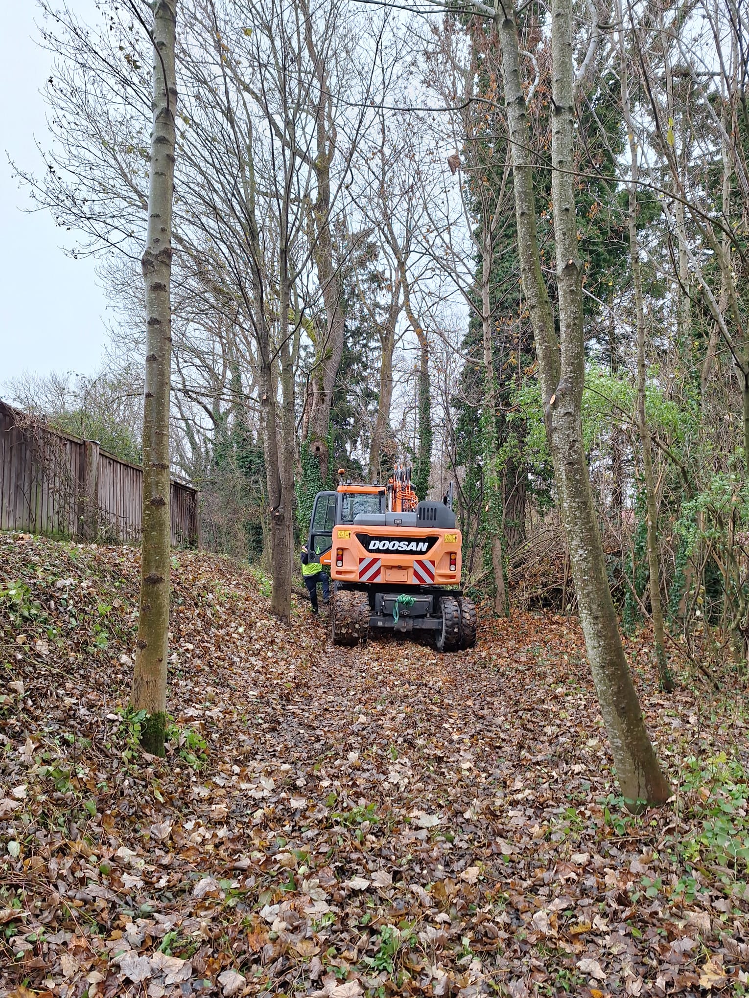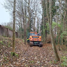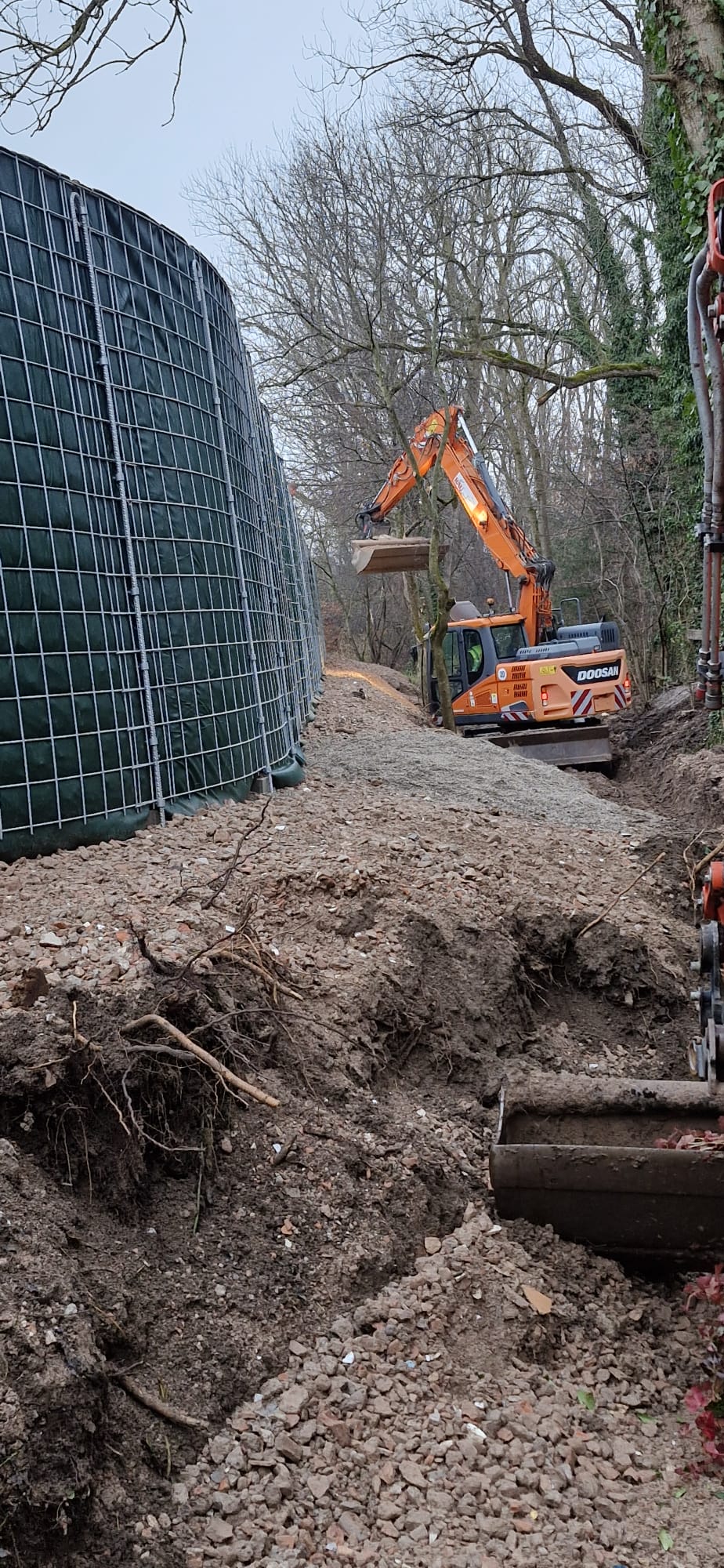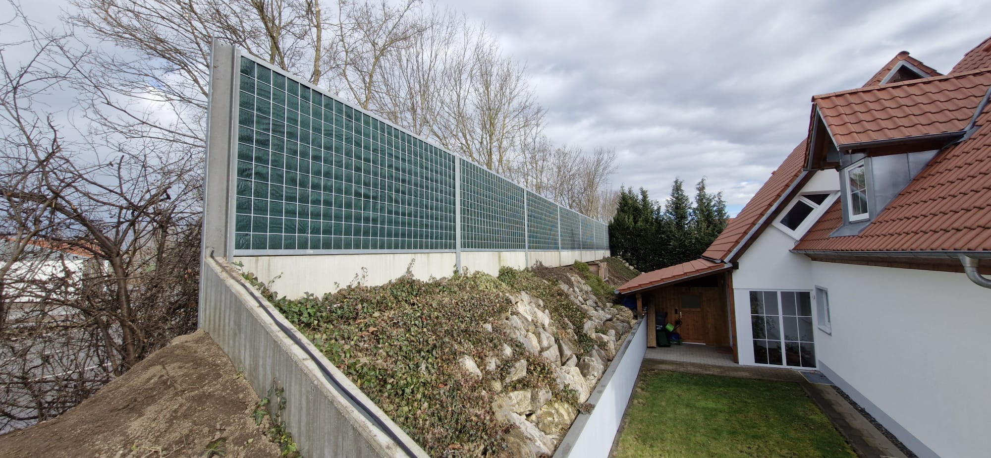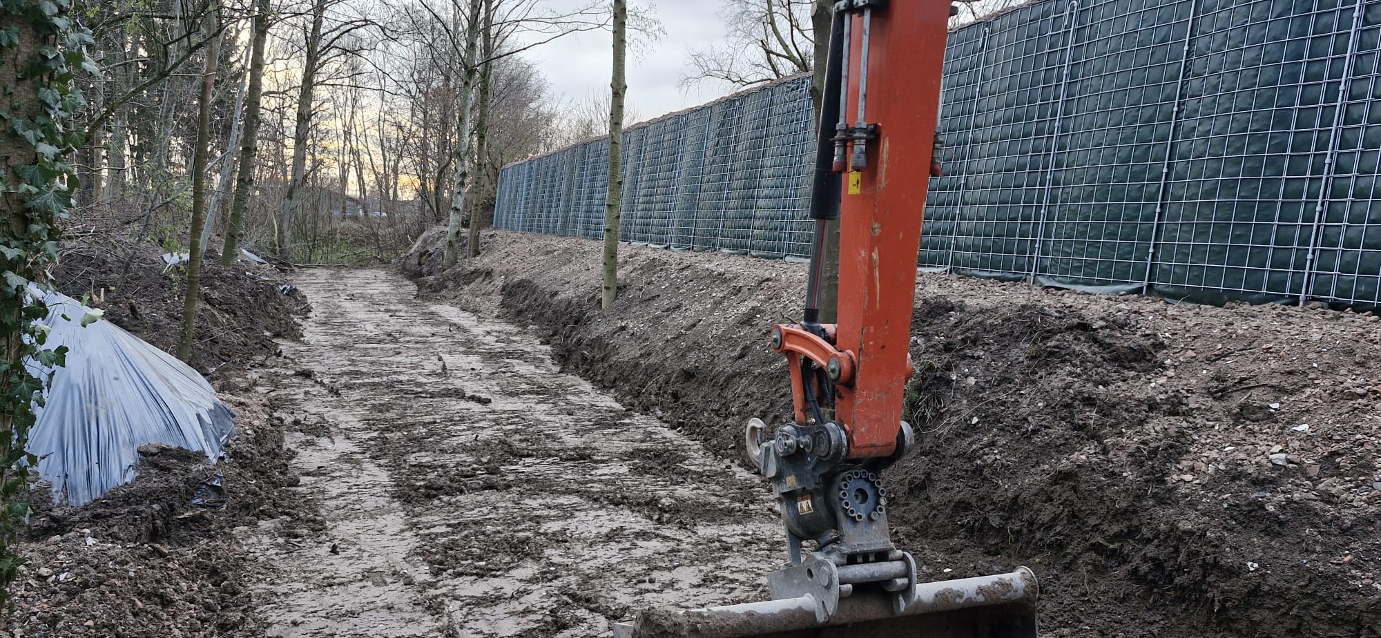 Zum einen hatten wir den Auftrag für den Rückbau und die fachgerechte Entsorgung einer alten, mit Chemikalien behandelten Lärmschutzwand aus Holz, die sehr in die Jahre gekommen war und technisch gesehen nicht mehr vor Lärm geschützt hat. Der Auftraggeber hatte sich als Neubau für unsere ökologische RAU Klimawand (R3) entschieden, die eine nachhaltige Alternative zu traditionellen Schallschutzwänden bietet. Eine Lärmschutzwand, die aus der Natur gemacht wird, in der sie steht. Ökologisch, wirtschaftlich, effektiv. Sie ist nicht nur hochwirksam bei der Reduzierung von Lärm, sondern auch ästhetisch ansprechend, haltbar und trägt zur Verbesserung des natürlichen Lebensraums bei. Der Auftrag sollte noch vor Weihnachten abgeschlossen werden.