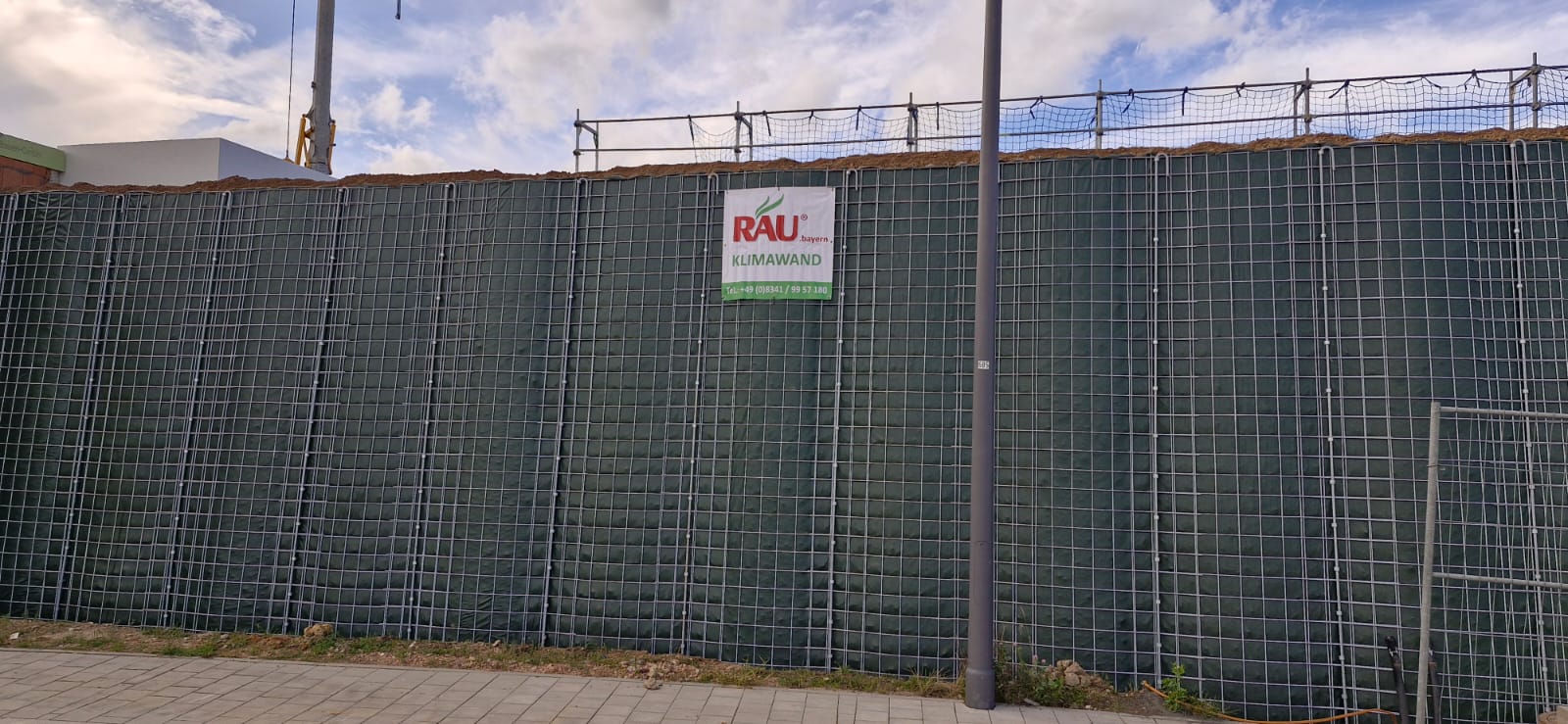 Bereits im Dezember 2023 haben wir an gleichem Standort in Maxhütte-Haidhof eine 34,80 m lange und 3,00 m hohe RAU Klimawand (R3) realisiert, die dem neuen Wohngebiet "lena" (steht für „Leben, Einkaufen, Natur und Ankommen“) Schutz vor Lärm geben wird. Das neue Projekt, nun in Zusammenarbeit mit der HD-Bau Gewerbe GmbH, ist etwas kürzer, stattdessen aber wesentlich höher.