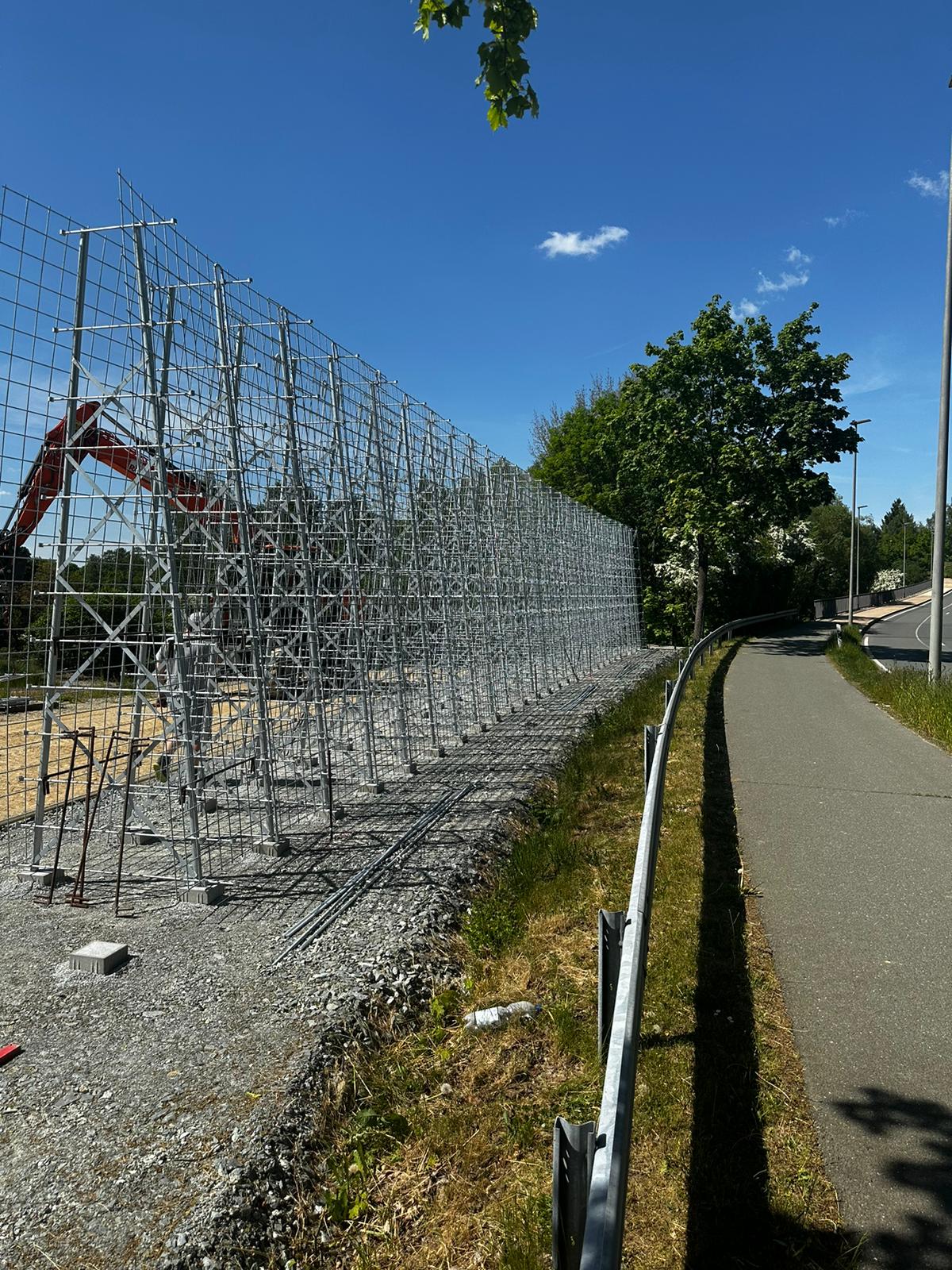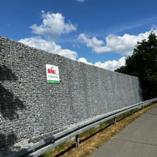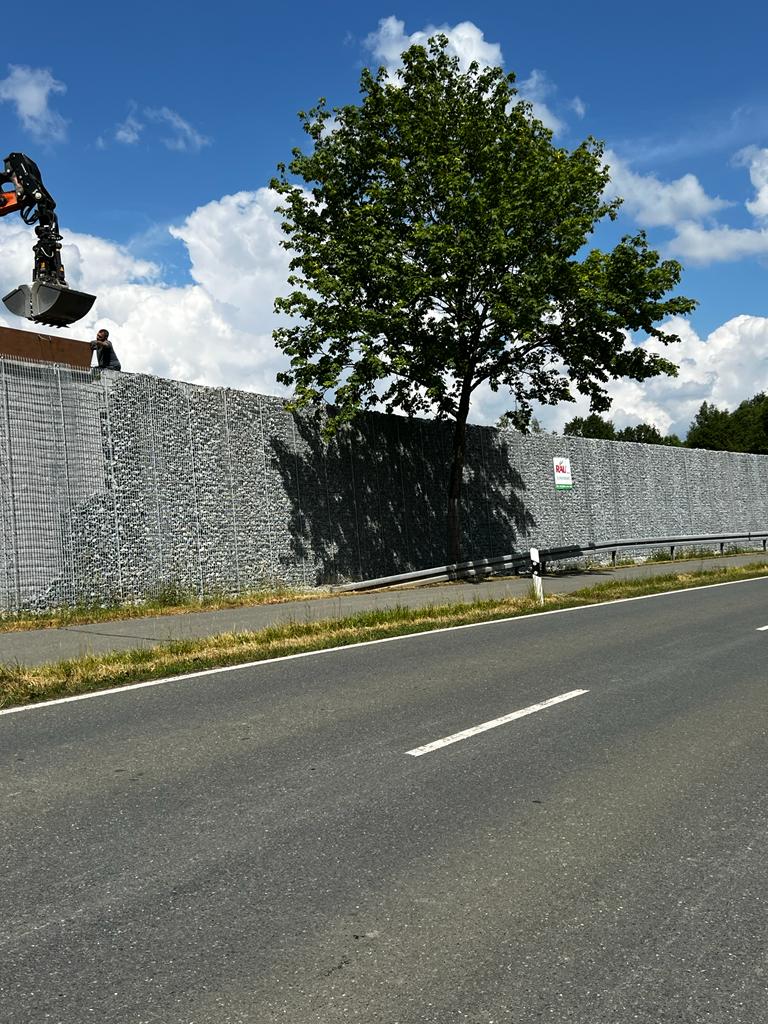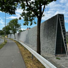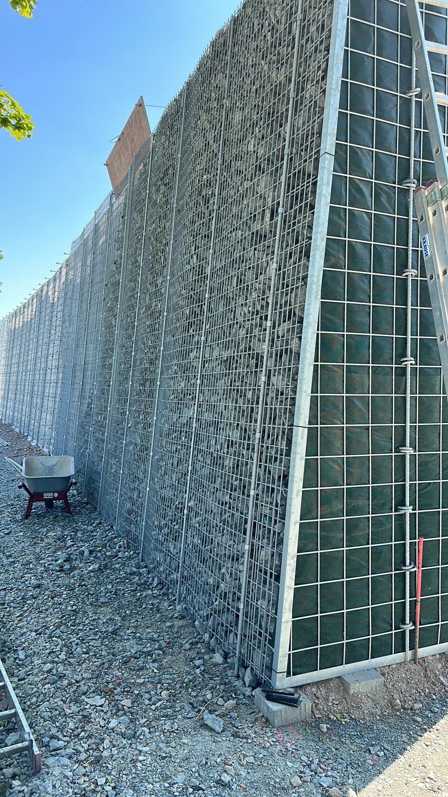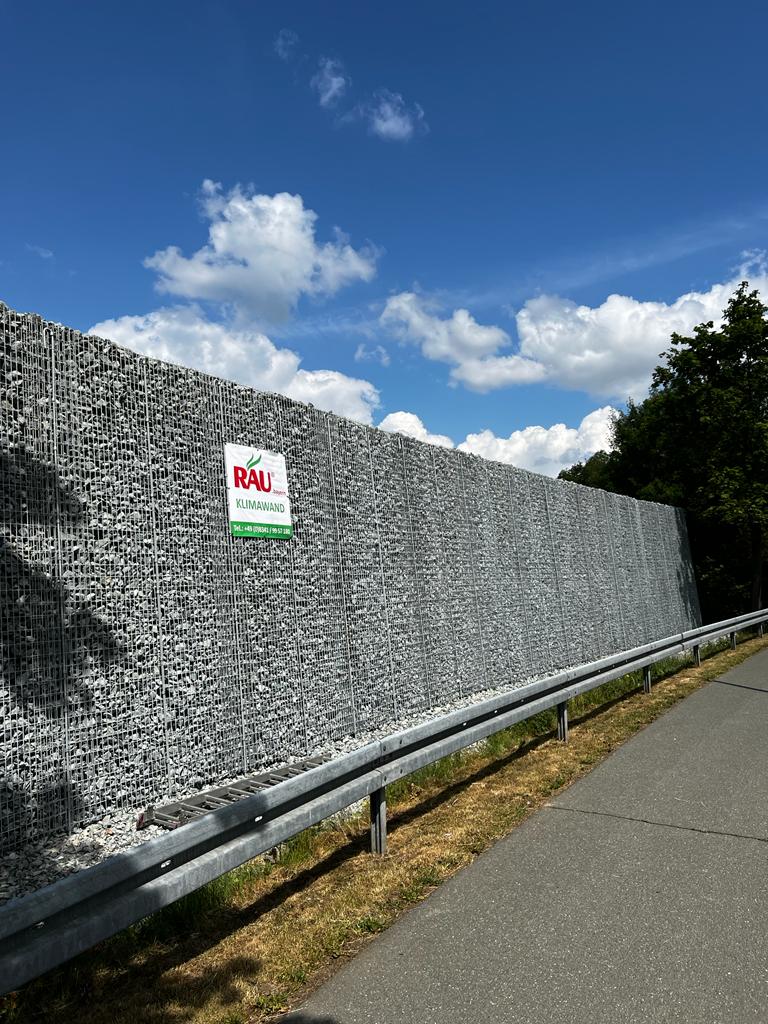 Kein Bewuchs auf der Straßenseite erlaubt? RAU Klimawand (R3) mit einseitigem Steinvorsatz durch die Gabionenwand RAU Alpin.