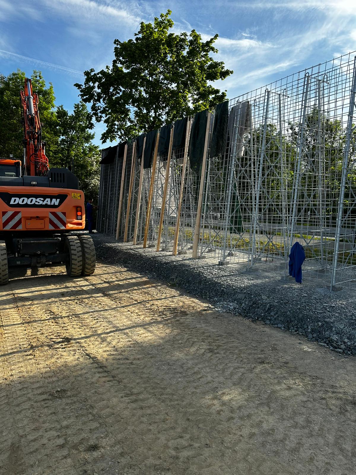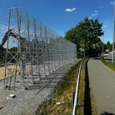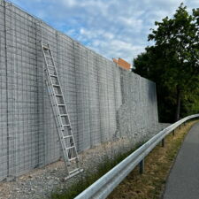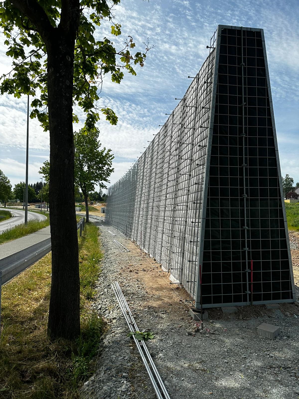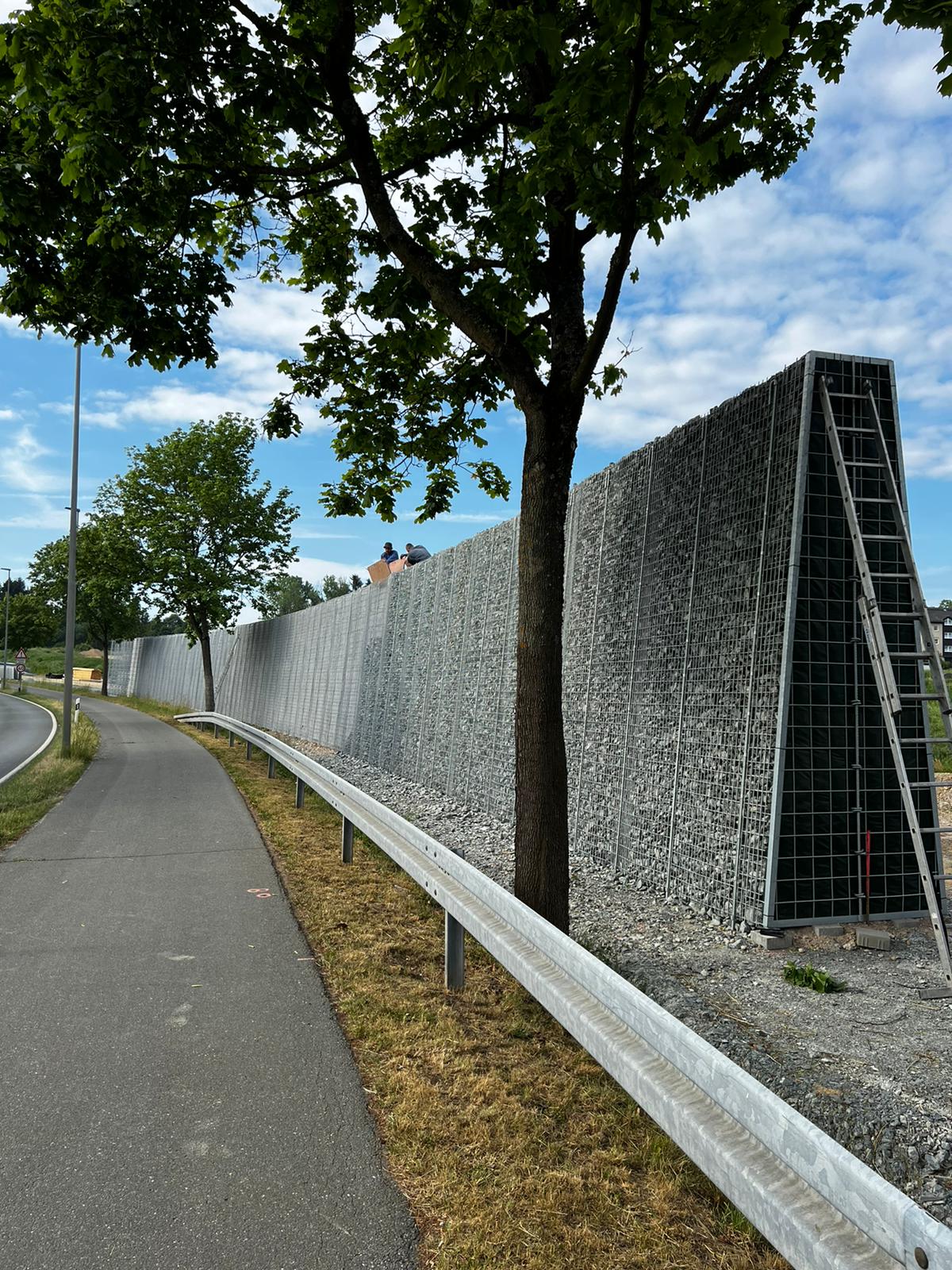Kein Bewuchs auf der Straßenseite erlaubt? RAU Klimawand (R3) mit einseitigem Steinvorsatz durch die Gabionenwand RAU Alpin.