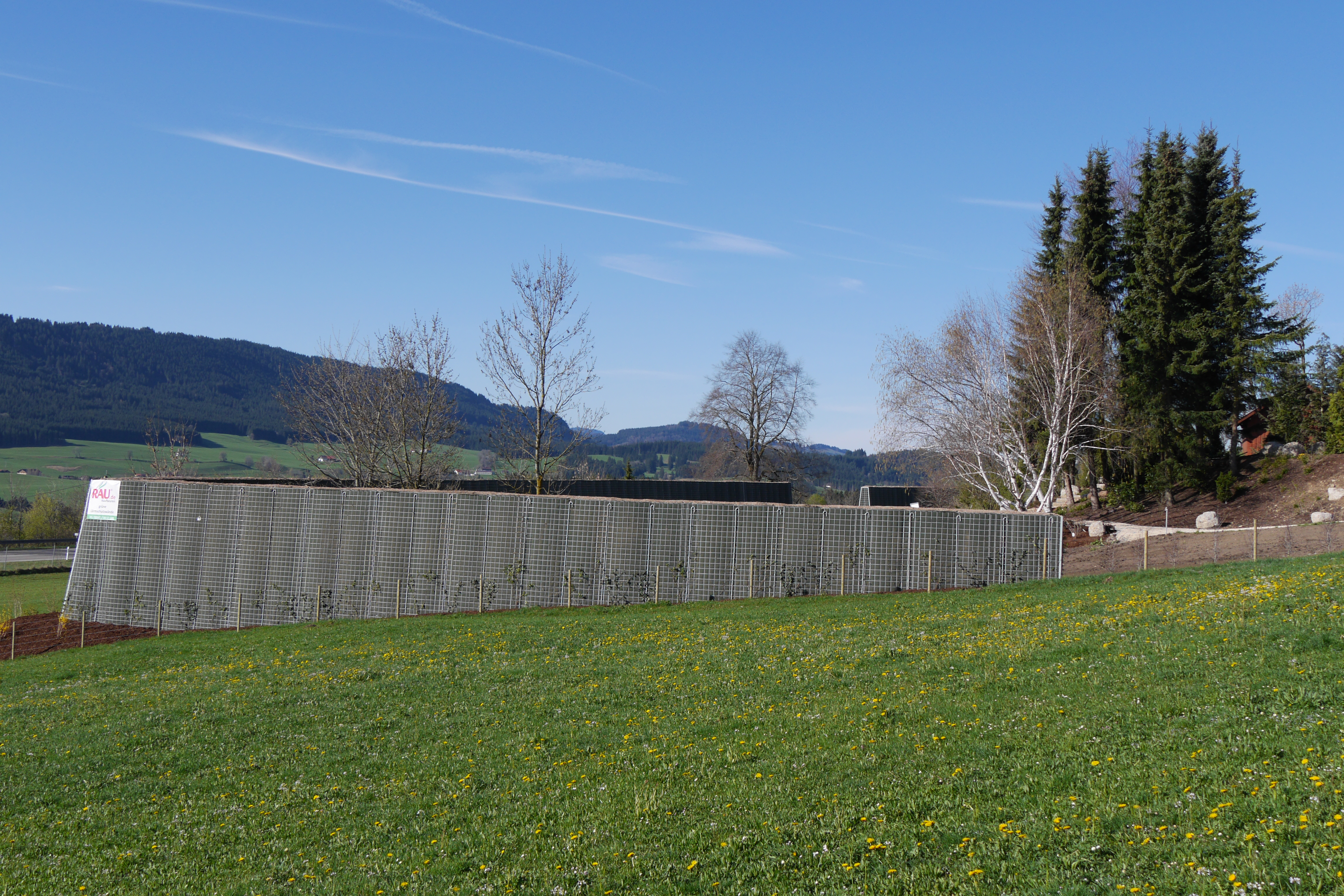 Die Eremitage des Ordens Heilig-Blut-Gemeinschaft liegt direkt an der vielbefahrenen B12 in Weitnau. Damit die Kurse, Seminare und Vorträge, die die Gemeinschaft anbietet, in der dafür notwendigen Ruhe stattfinden können, wurde um das Gelände eine extensive RAU R3 Lärmschutzwand errichtet, die in kürzester Zeit wunderbar üppiges Grün entwickelte.
